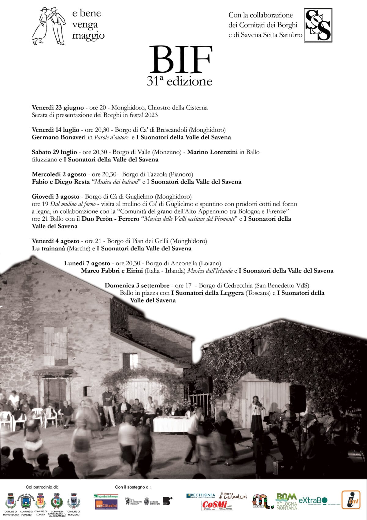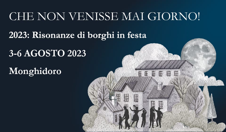 Per motivi organizzativi indipendenti dalla volontà dell’Associazione, correlati alla viabilità ancora troppo critica della zona, si comunica che la serata prevista per giovedí 3 agosto non si svolgerà nel borgo di Cà di Guglielmo (Monghidoro), bensí a Piamaggio (Monghidoro), con il seguente programma: